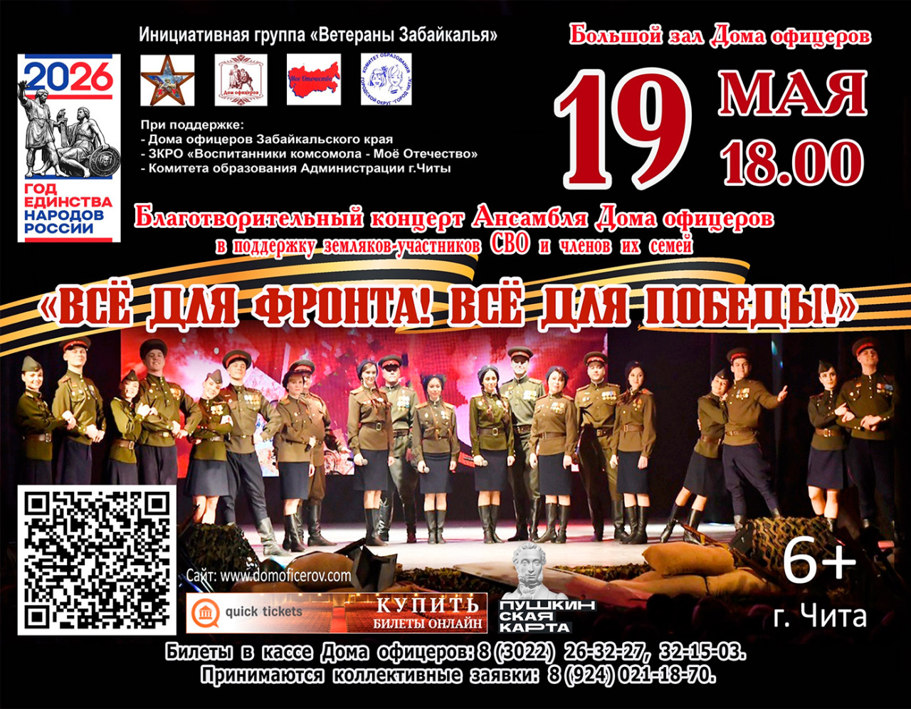 | Праздничный концерт Ансамбля песни и танца Дома офицеров Забайкальского края «И помнит мир спасённый...» | 6 мая 2026 | 18:00 | 500-800 руб. |
